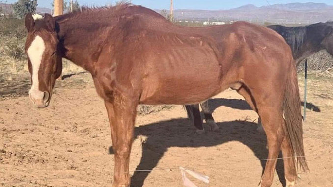 MOHAVE COUNTY – A Golden Valley woman, Angela Jeannine Shubert, has been arrested after Mohave County Sheriff’s deputies responded to a request for an animal welfare check and founding several starving and one dead horse.