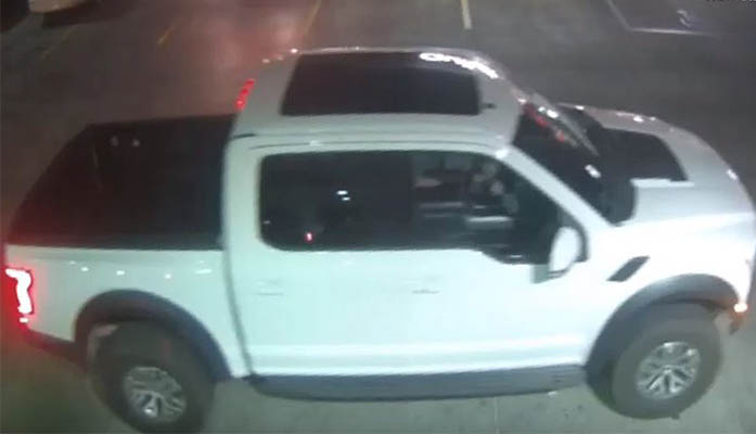 Suspect is driving a white and black 4 door Ford Raptor with a sunroof.