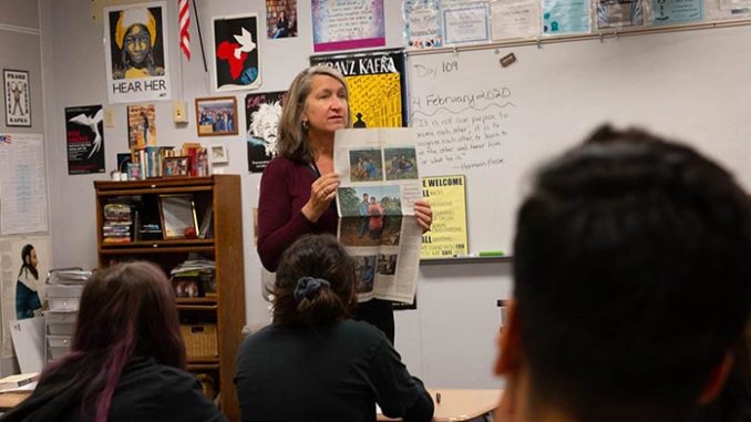 That’s in contrast to Kim Klett, an English teacher who teaches Holocaust and genocide literature at Dobson High School to seniors like Sanchez over two semesters.