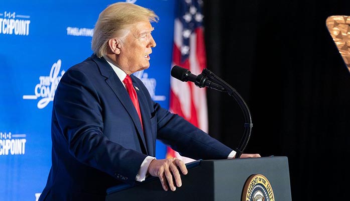 President Donald Trump told a group of Latino business leaders Wednesday that Hispanics were faring well as a result of the “booming Trump economy.” but critics charge his economic reforms have not helped the vast majority of Latinos in the U.S. (Photo by Tia Dufour/The White House)