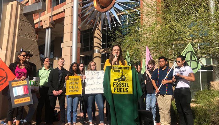 climate activists Arizona Youth Climate organizer Claire Nelson, 17, speaks about why Phoenix officials should declare a climate emergency. More than 10 Arizona organizations endorse the declaration. (Photo by Madison Staten/ Cronkite News)