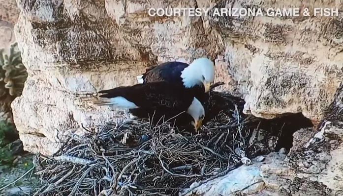 bald eagles Bald eagle breeding season is under way in Arizona with a 24/7 eagle cam at Lake Pleasant. Local bird watchers are hopeful for a better year than last year with the hope of the eagle population continuing to grow in Arizona.
