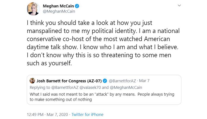 Meghan’s series of twitter attacks on lowly congressional candidate Josh Barnett turned uglier and uglier.
