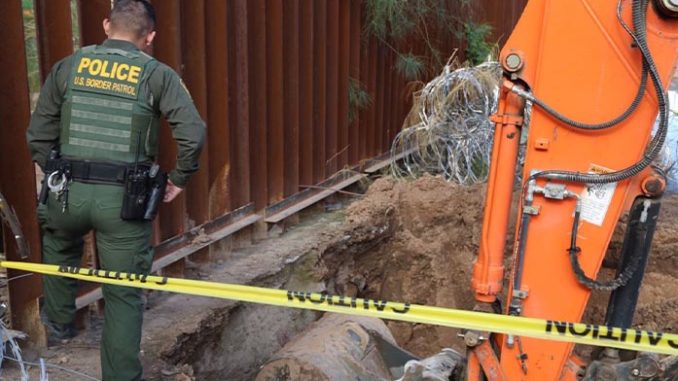 According to U.S. Customs and Border Protection (CBP), contractors had been moving soil while working on the border wall in the area when they uncovered plywood and boards. After more digging agents found an incomplete tunnel that measured approximately 8 to 12 ft below the surface of the ground at the location of the sink hole.