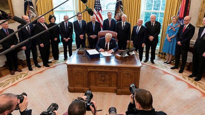 WASHINGTON – President Donald Trump signed a $2 trillion economic stimulus package just hours after it was rushed through the House Friday, clearing the way for aid to businesses, increased benefits for workers and direct payments to taxpayers.