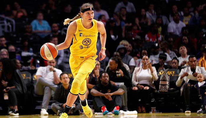 basketball Guard Sydney Wiese, a Pinnacle High School product who now plays for the WNBA’s Los Angeles Sparks, tested positive for COVID-19 after competing in Spain. (Photo by Meg Oliphant)