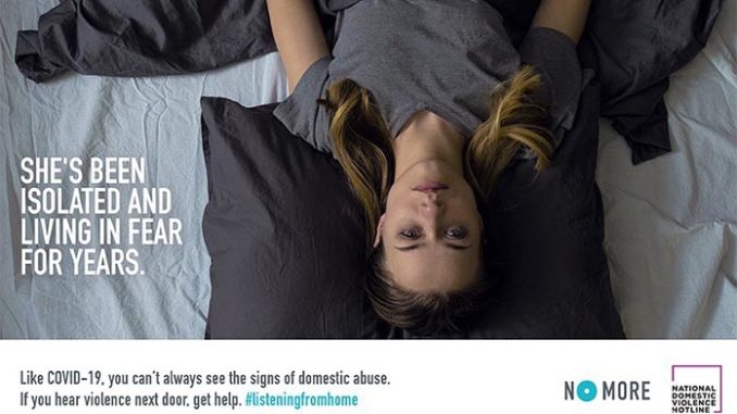 The National Domestic Violence Hotline has teamed up with the No More project to launch a #listeningfromhome campaign, aimed at raising awareness for the victims of domestic abuse trapped at home due to novel coronavirus. It educates the public on warning signs, and encourages people to seek help if they observe incidents of abuse.