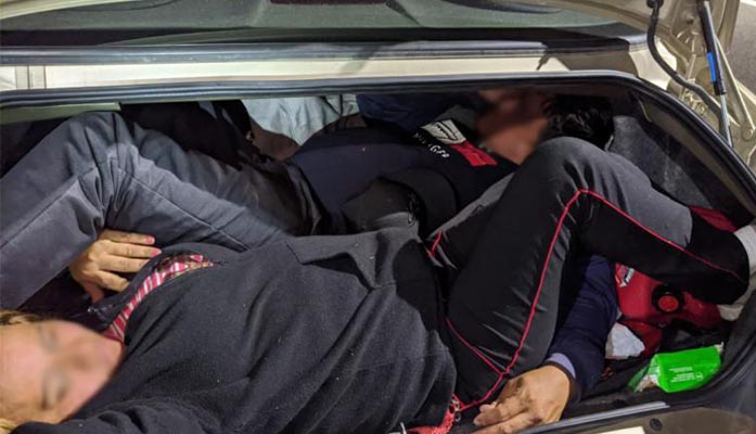 smuggled humans Border Patrol agents discovered three individuals in the trunk of a smuggling vehicle. [Photo courtesy U.S. Customs and Border Protection]