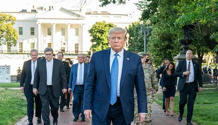 President Donald Trump walks across Lafayette Square after police cleared it of protesters Monday using tear gas and mounted officers. Trump was on his way to a photo op, after announcing his intention to send federal troops to fight protests over the death of George Floyd. (Photo by Shealah Craighead/The White House)