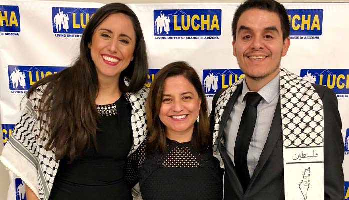 salman Rep. Athena Salman (left) at a LUCHA event in 2017 with former Rep. Isela Blanc, and her significant other, Sen. Juan Mendez.