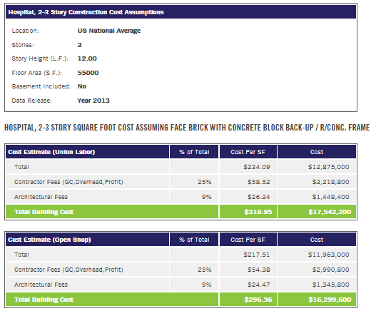 Hospital costs per square foot 2013