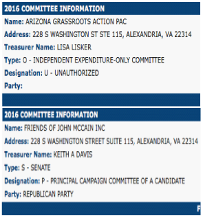 “Arizona Grassroots Action” PAC is also listed with the FEC as an “unauthorized, independent PAC;” meaning it cannot (or isn’t supposed to) have any coordination or communication with the McCain camp or the Friends of John McCain Committee.